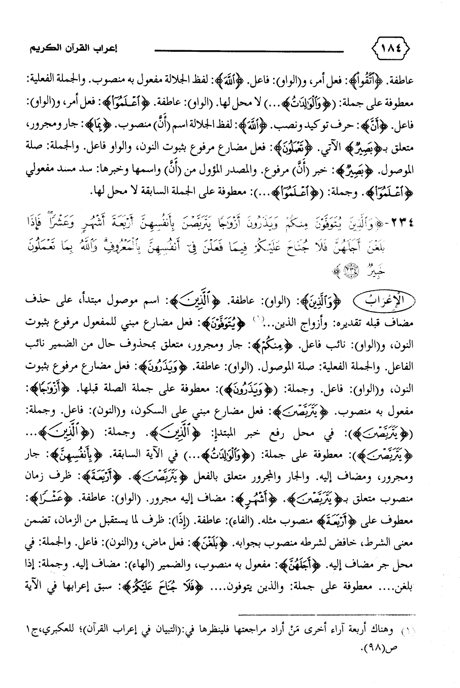 {وَالَّذِينَ}: (الواو): عاطفة. {الَّذِينَ}: اسم موصول مبتدأ، على حذف مضاف قبله تقديره: وأزواج الذين ... (١) {يُتَوَفَّوْنَ}: فعل مضارع مبني للمفعول مرفوع بثبوت النون، و (الواو): نائب فاعل. {مِنْكُمْ}: جار ومجرور، متعلق بمحذوف حال من الضمير نائب الفاعل. والجملة الفعلية: صلة الموصول. (الواو): عاطفة. {وَيَذَرُونَ}: فعل مضارع مرفوع بثبوت النون، و (الواو): فاعل. وجملة: {وَيَذَرُونَ}: معطوفة على جملة الصلة قبلها. {أَزْواجاً}: