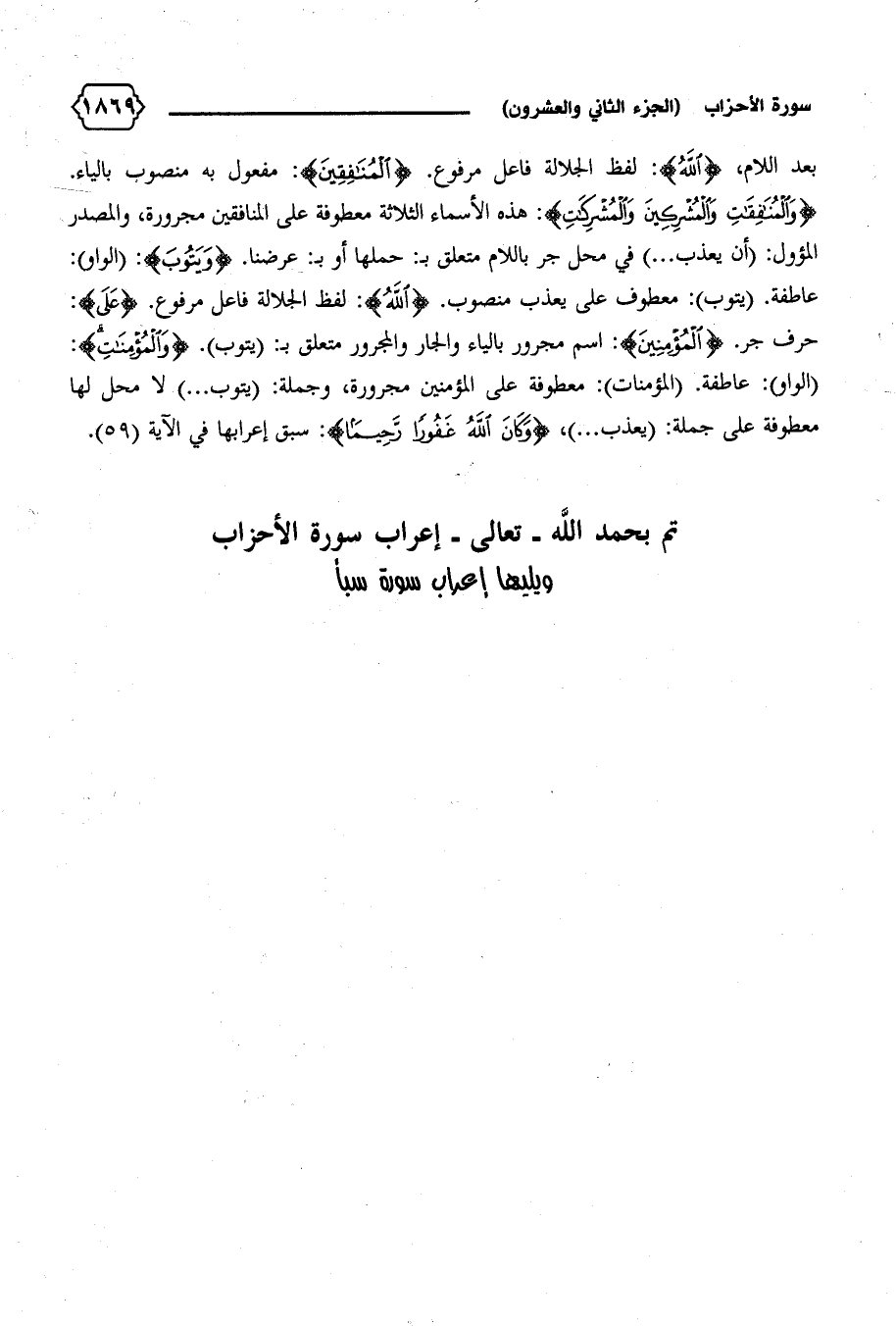 تم بحمد الله-تعالى-إعراب سورة الأحزاب