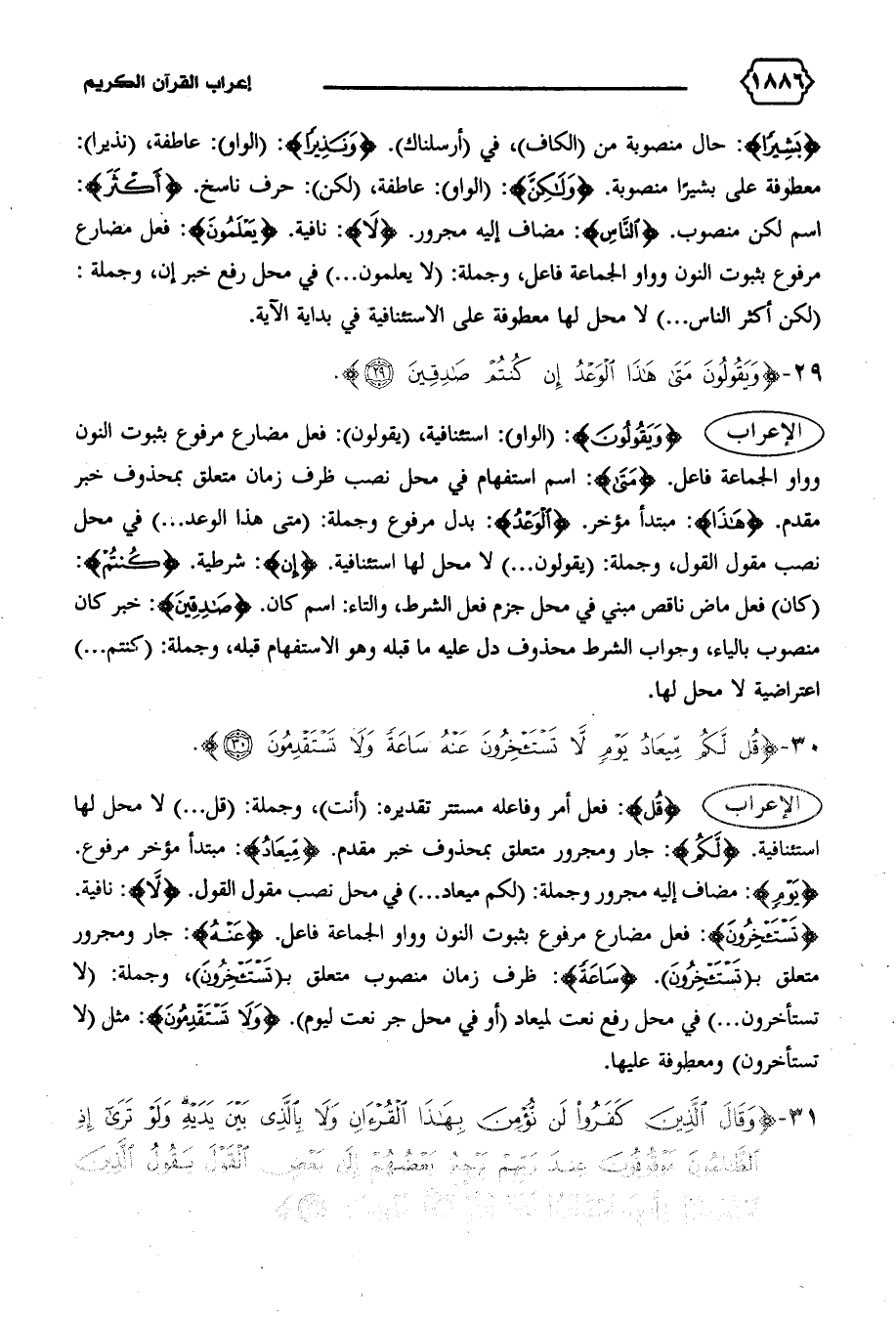 الإعراب {وَيَقُولُونَ}: (الواو): استئنافية، (يقولون): فعل مضارع مرفوع بثبوت النون وواو الجماعة فاعل. {مَتى}: اسم استفهام في محل نصب ظرف زمان متعلق بمحذوف خبر مقدم. {هذَا}: مبتدأ مؤخر. {الْوَعْدُ}: بدل مرفوع وجملة: (متى هذا الوعد ... ) في محل نصب مقول القول، وجملة: (يقولون ... ) لا محل لها استئنافية. {إِنْ}: شرطية. {كُنْتُمْ}: