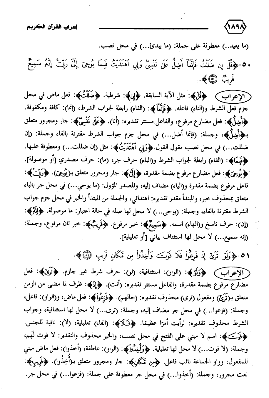 الإعراب {قُلْ}: مثل الآية السابقة. {إِنْ}: شرطية. {ضَلَلْتُ}: فعل ماض في محل جزم فعل الشرط و (التاء) فاعله. {فَإِنَّما}: (الفاء) رابطة لجواب الشرط، (إنما): كافة ومكفوفة.