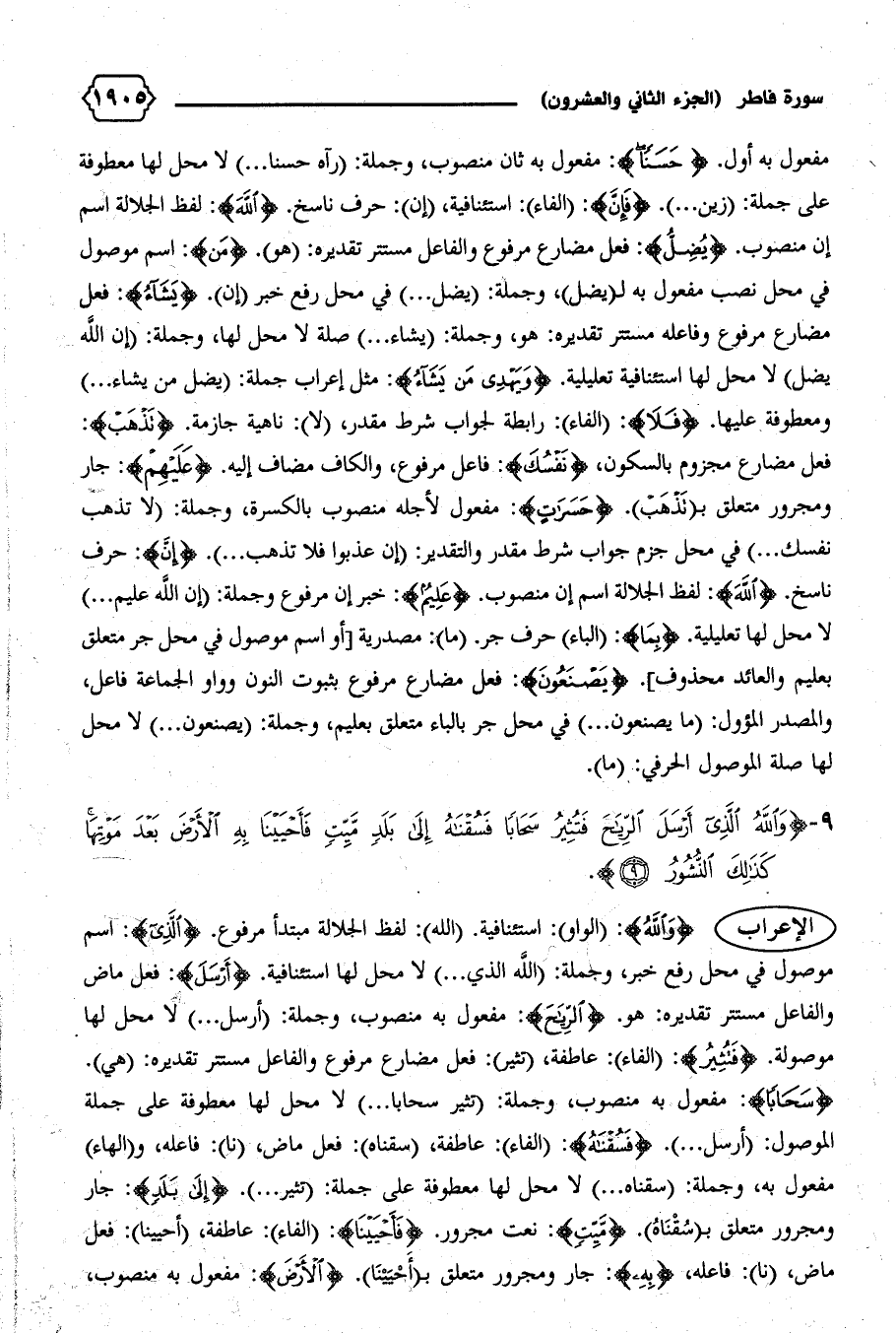 الإعراب {وَاللهُ}: (الواو): استئنافية. (الله): لفظ الجلالة مبتدأ مرفوع. {الَّذِي}: اسم موصول في محل رفع خبر، وجملة: (الله الذي ... ) لا محل لها استئنافية. {أَرْسَلَ}: فعل ماض والفاعل مستتر تقديره: هو. {الرِّياحَ}: مفعول به منصوب، وجملة: (أرسل ... ) لا محل لها موصولة. {فَتُثِيرُ}: (الفاء): عاطفة، (تثير): فعل مضارع مرفوع والفاعل مستتر تقديره: (هي).