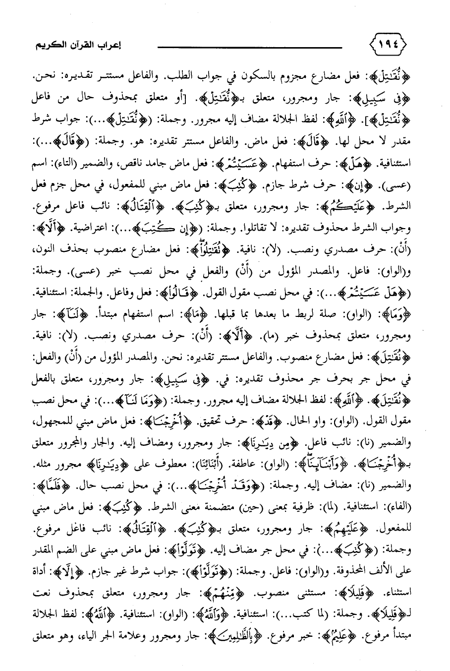 (أن): حرف مصدري ونصب. (لا): نافية. {تُقاتِلُوا}: فعل مضارع منصوب بحذف النون، و (الواو): فاعل. والمصدر المؤول من (أن) والفعل في محل نصب خبر (عسى).وجملة: