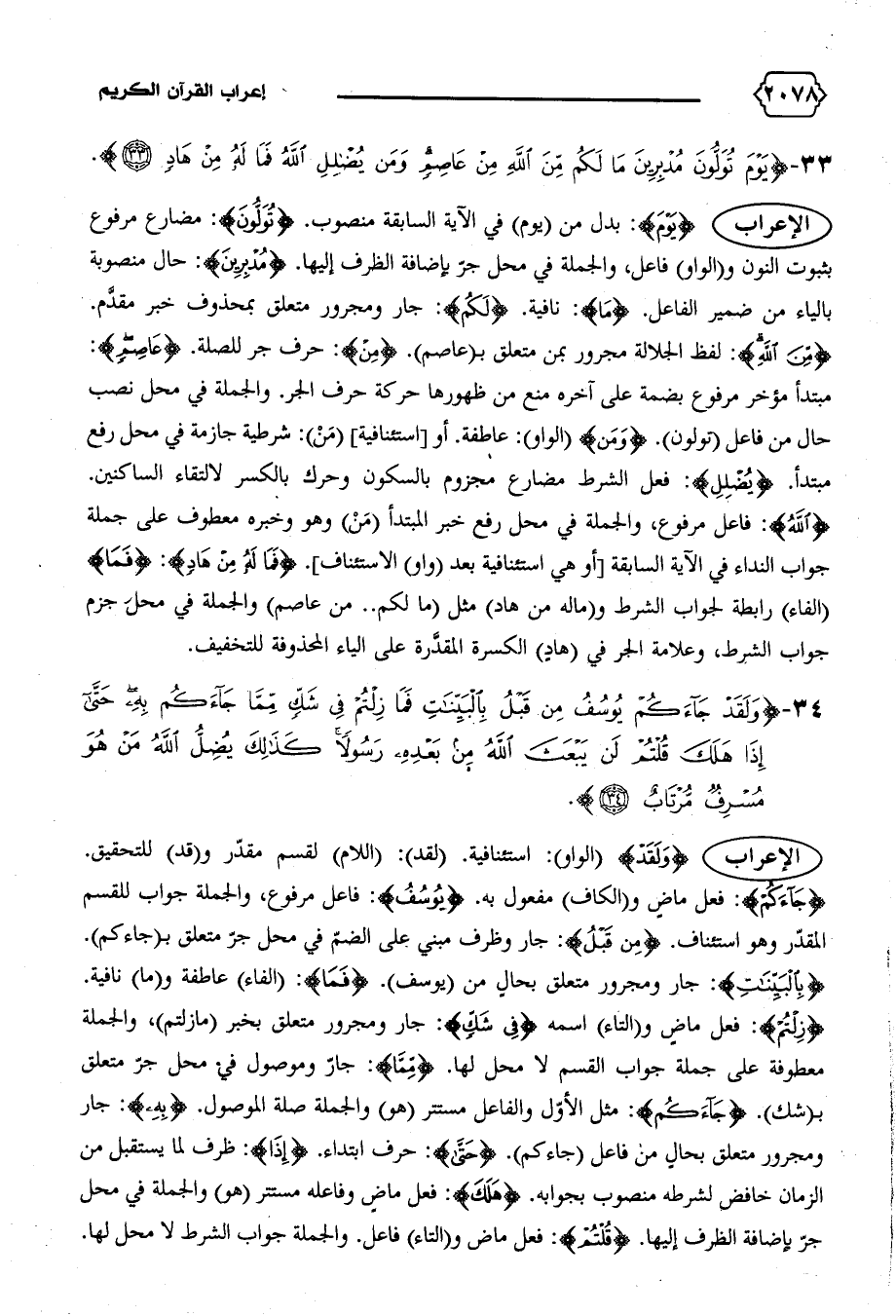 ٣٣ - {يَوْمَ تُوَلُّونَ مُدْبِرِينَ ما لَكُمْ مِنَ اللهِ مِنْ عاصِمٍ وَمَنْ يُضْلِلِ اللهُ فَما لَهُ مِنْ هادٍ (٣٣)}
