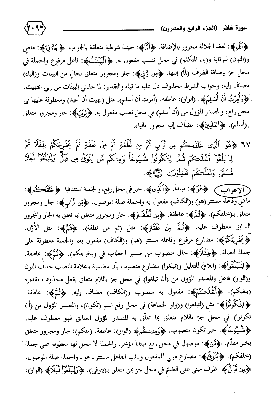 ٦٧ - {هُوَ الَّذِي خَلَقَكُمْ مِنْ تُرابٍ ثُمَّ مِنْ نُطْفَةٍ ثُمَّ مِنْ عَلَقَةٍ ثُمَّ يُخْرِجُكُمْ طِفْلاً ثُمَّ لِتَبْلُغُوا أَشُدَّكُمْ ثُمَّ لِتَكُونُوا شُيُوخاً وَمِنْكُمْ مَنْ يُتَوَفّى مِنْ قَبْلُ وَلِتَبْلُغُوا أَجَلاً مُسَمًّى وَلَعَلَّكُمْ تَعْقِلُونَ (٦٧)}