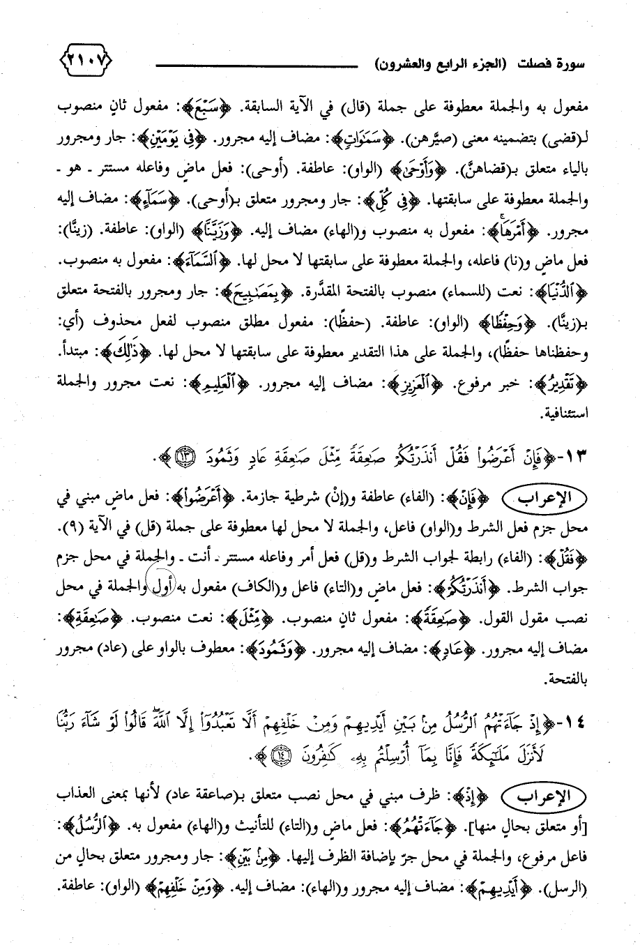 الإعراب {فَإِنْ}: (الفاء) عاطفة و (إن) شرطية جازمة. {أَعْرَضُوا}: فعل ماض مبني في محل جزم فعل الشرط و (الواو) فاعل، والجملة لا محل لها معطوفة على جملة (قل) في الآية (٩).