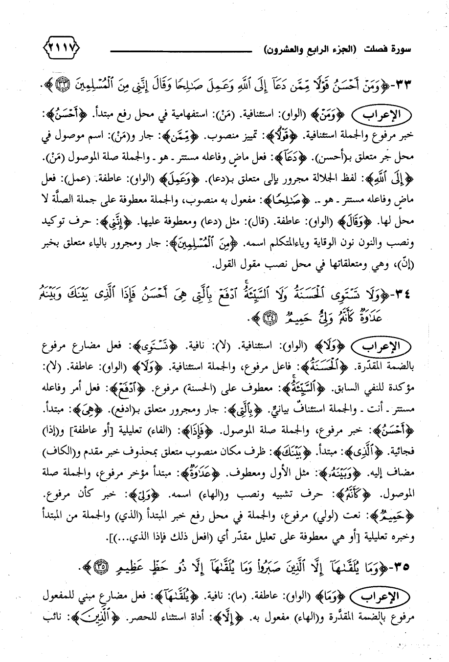 ٣٣ - {وَمَنْ أَحْسَنُ قَوْلاً مِمَّنْ دَعا إِلَى اللهِ وَعَمِلَ صالِحاً وَقالَ إِنَّنِي مِنَ الْمُسْلِمِينَ (٣٣)}