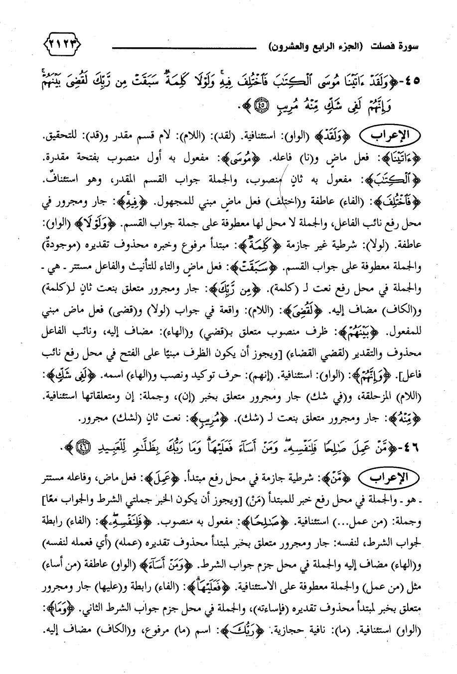 ٤٥ - {وَلَقَدْ آتَيْنا مُوسَى الْكِتابَ فَاخْتُلِفَ فِيهِ وَلَوْلا كَلِمَةٌ سَبَقَتْ مِنْ رَبِّكَ لَقُضِيَ بَيْنَهُمْ وَإِنَّهُمْ لَفِي شَكٍّ مِنْهُ مُرِيبٍ (٤٥)}