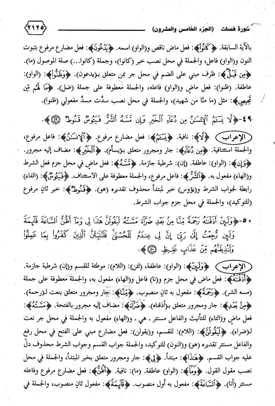 الإعراب {لا}: نافية. {يَسْأَمُ}: فعل مضارع مرفوع. {الْإِنْسانُ}: فاعل مرفوع، والجملة استئنافية. {مِنْ دُعاءِ}: جار ومجرور متعلق ب (يسأم). {الْخَيْرِ}: مضاف إليه مجرور.