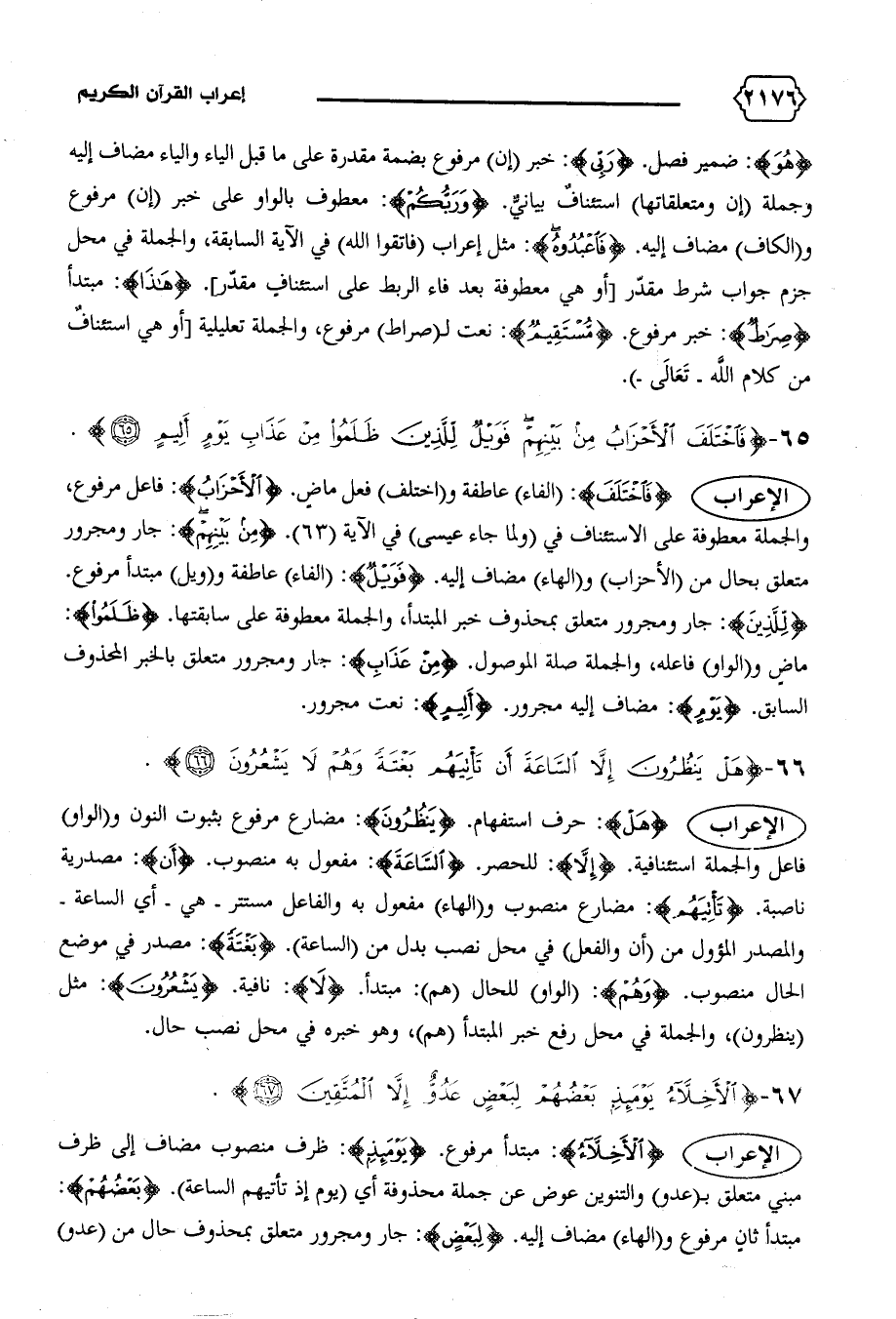 الإعراب {فَاخْتَلَفَ}: (الفاء) عاطفة و (اختلف) فعل ماض. {الْأَحْزابُ}: فاعل مرفوع، والجملة معطوفة على الاستئناف في (ولما جاء عيسى) في الآية (٦٣). {مِنْ بَيْنِهِمْ}: جار ومجرور متعلق بحال من (الأحزاب) و (الهاء) مضاف إليه. {فَوَيْلٌ}: (الفاء) عاطفة و (ويل) مبتدأ مرفوع.