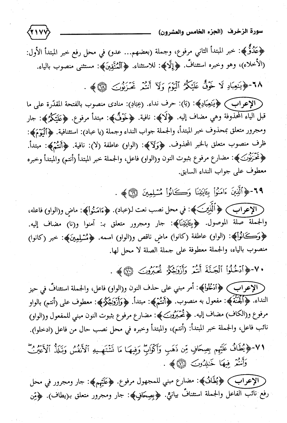 الإعراب {الَّذِينَ}: في محل نصب نعت ل (عباد). {آمَنُوا}: ماض و (الواو) فاعله، والجملة صلة الموصول. {بِآياتِنا}: جار ومجرور متعلق ب: آمنوا و (نا) مضاف إليه.