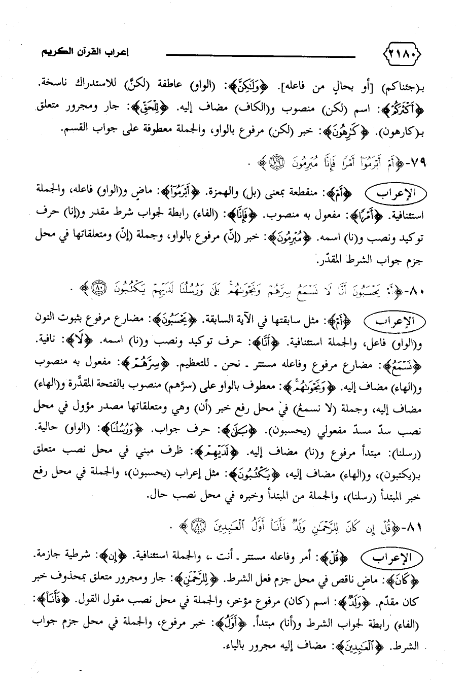 الإعراب {أَمْ}: منقطعة بمعنى (بل) والهمزة. {أَبْرَمُوا}: ماض و (الواو) فاعله، والجملة استئنافية. {أَمْراً}: مفعول به منصوب. {فَإِنّا}: (الفاء) رابطة لجواب شرط مقدر و (إنا) حرف توكيد ونصب و (نا) اسمه. {مُبْرِمُونَ}: خبر (إنّ) مرفوع بالواو، وجملة (إنّ) ومتعلقاتها في محل جزم جواب الشرط المقدّر.