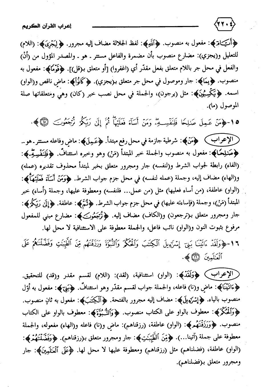(الواو) عاطفة، (من أساء فعليها) مثل (من عمل ... فلنفسه) ومعطوفة عليها، وجملة (أساء) خبر المبتدأ (من)، وجملة (فإساءته عليها) في محل جزم جواب الشرط. {ثُمَّ}: عاطفة. {إِلى رَبِّكُمْ}: