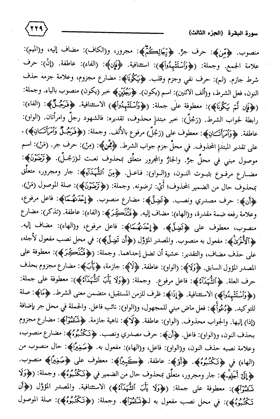 {وَاسْتَشْهِدُوا} الاستئنافية. {إِذا}: ظرف للزمن المستقبل، متضمن معنى الشرط. {ما}: صلة للتوكيد. {دُعُوا}: فعل ماض مبني للمجهول، و (الواو): نائب فاعل. والجملة في محل جر بإضافة (إذا) إليها. والجواب محذوف. (الواو): عاطفة. {لا}: ناهية جازمة. {تَسْئَمُوا}: مضارع مجزوم بحذف النون، و (الواو): فاعل. {أَنْ}: حرف مصدري ونصب. {تَكْتُبُوهُ}: مضارع منصوب، وعلامة نصبه حذف النون، و (الواو): فاعل، و (الهاء): مفعول به. {صَغِيراً}: حال منصوب من (الهاء) في {تَكْتُبُوهُ}. {أَوْ}: عاطفة. {كَبِيراً}: معطوف على {صَغِيراً} منصوب.