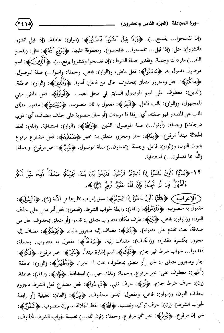 الإعراب {يا أَيُّهَا الَّذِينَ آمَنُوا إِذا ناجَيْتُمُ}: سبق إعراب نظيرها في الآية (٩). {الرَّسُولَ}: