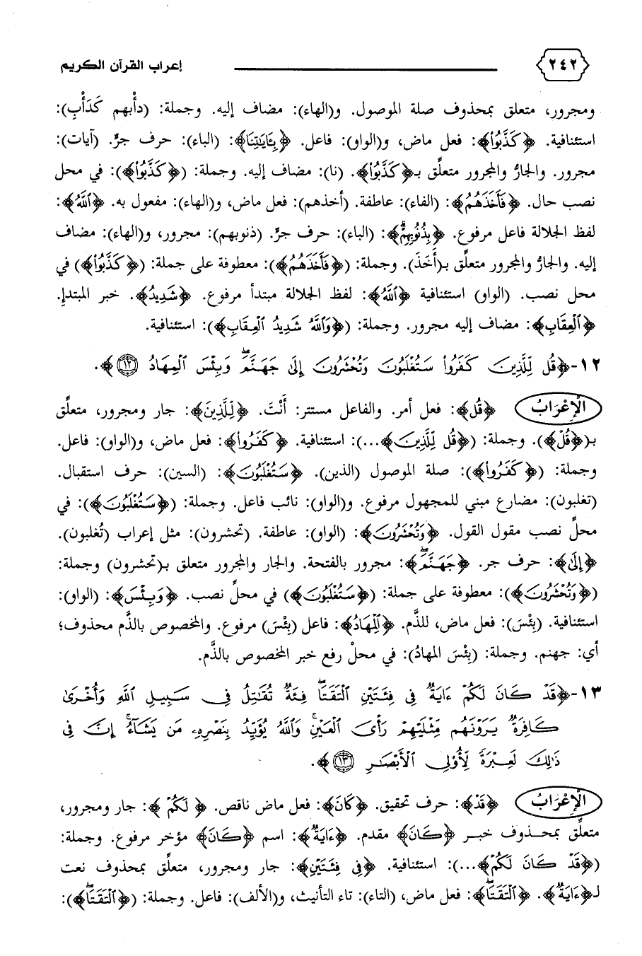 {قَدْ كانَ لَكُمْ ... }: استئنافية. {فِي فِئَتَيْنِ}: جار ومجرور، متعلّق بمحذوف نعت ل‍ {آيَةٌ}. {اِلْتَقَتا}: فعل ماض، (التاء): تاء التأنيث، و (الألف): فاعل. وجملة: {الْتَقَتا}: