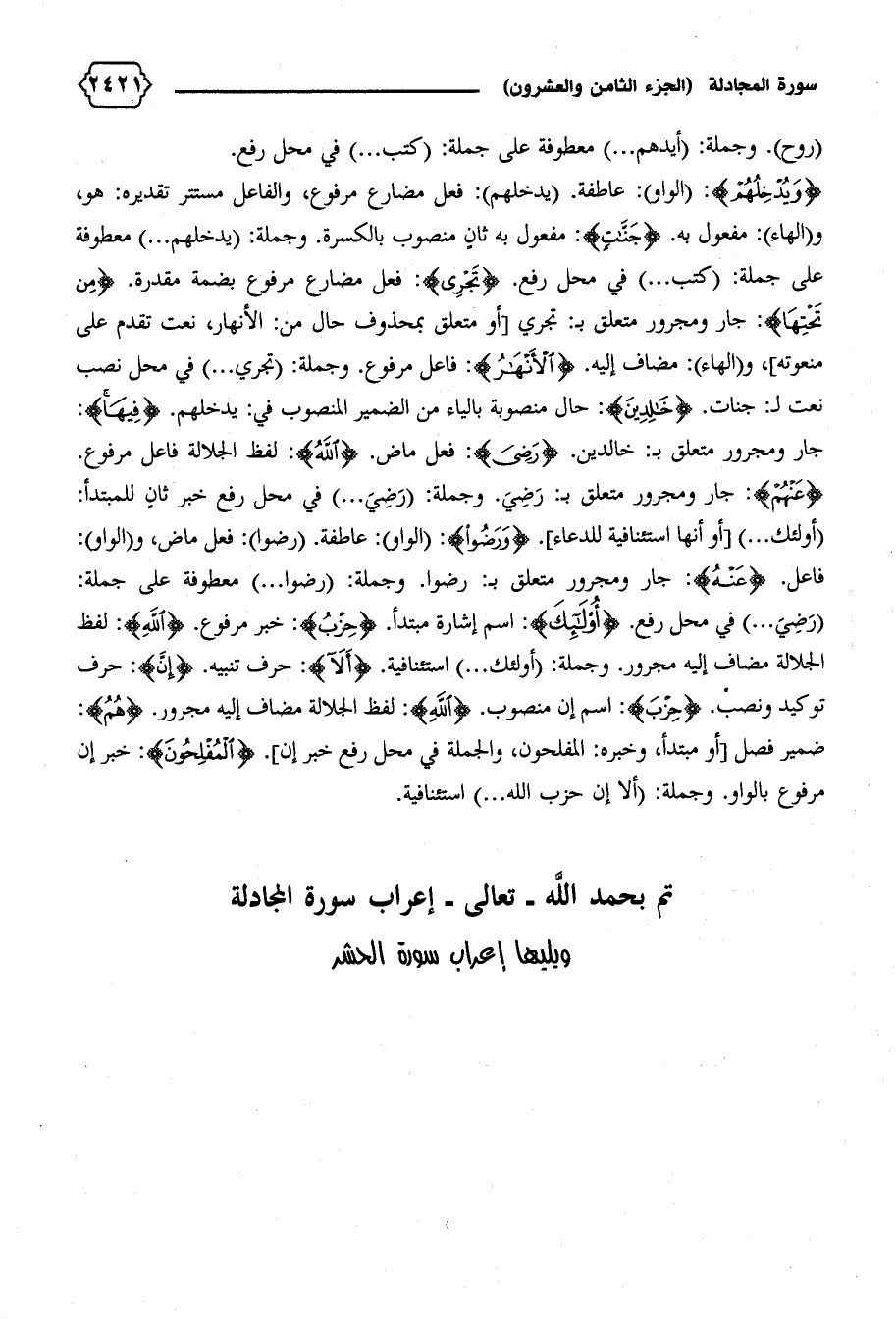تم بحمد الله-تعالى-إعراب سورة المجادلة