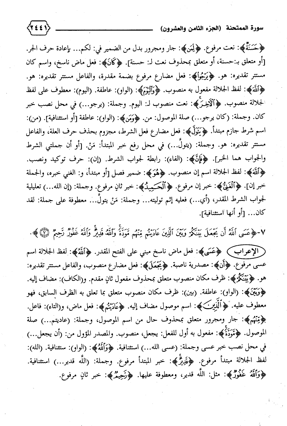 {مِنْهُمْ}: جار ومجرور متعلق بمحذوف حال من اسم الموصول، وجملة: (عاديتم ... ) صلة الموصول. {مَوَدَّةً}: مفعول به أول للفعل: يجعل، منصوب. والمصدر المؤول من: (أن يجعل ... ) في محل نصب خبر عسى وجملة: (عسى الله ... ) استئنافية. {وَاللهُ}: (الواو): استئنافية. (الله):