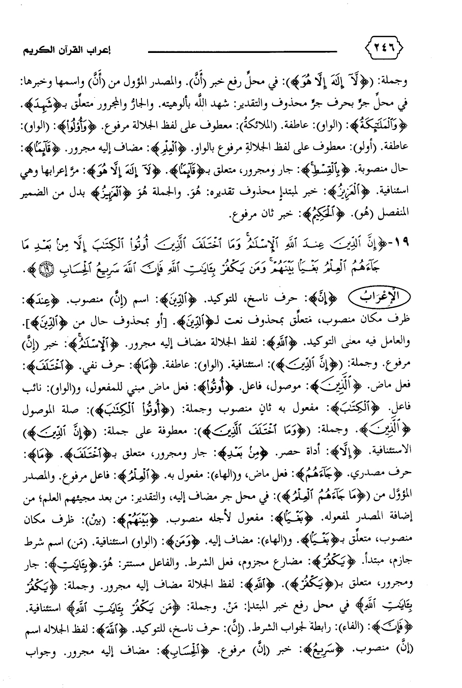 ١٩ - {إِنَّ الدِّينَ عِنْدَ اللهِ الْإِسْلامُ وَمَا اِخْتَلَفَ الَّذِينَ أُوتُوا الْكِتابَ إِلاّ مِنْ بَعْدِ ما جاءَهُمُ الْعِلْمُ بَغْياً بَيْنَهُمْ وَمَنْ يَكْفُرْ بِآياتِ اللهِ فَإِنَّ اللهَ سَرِيعُ الْحِسابِ (١٩)}
