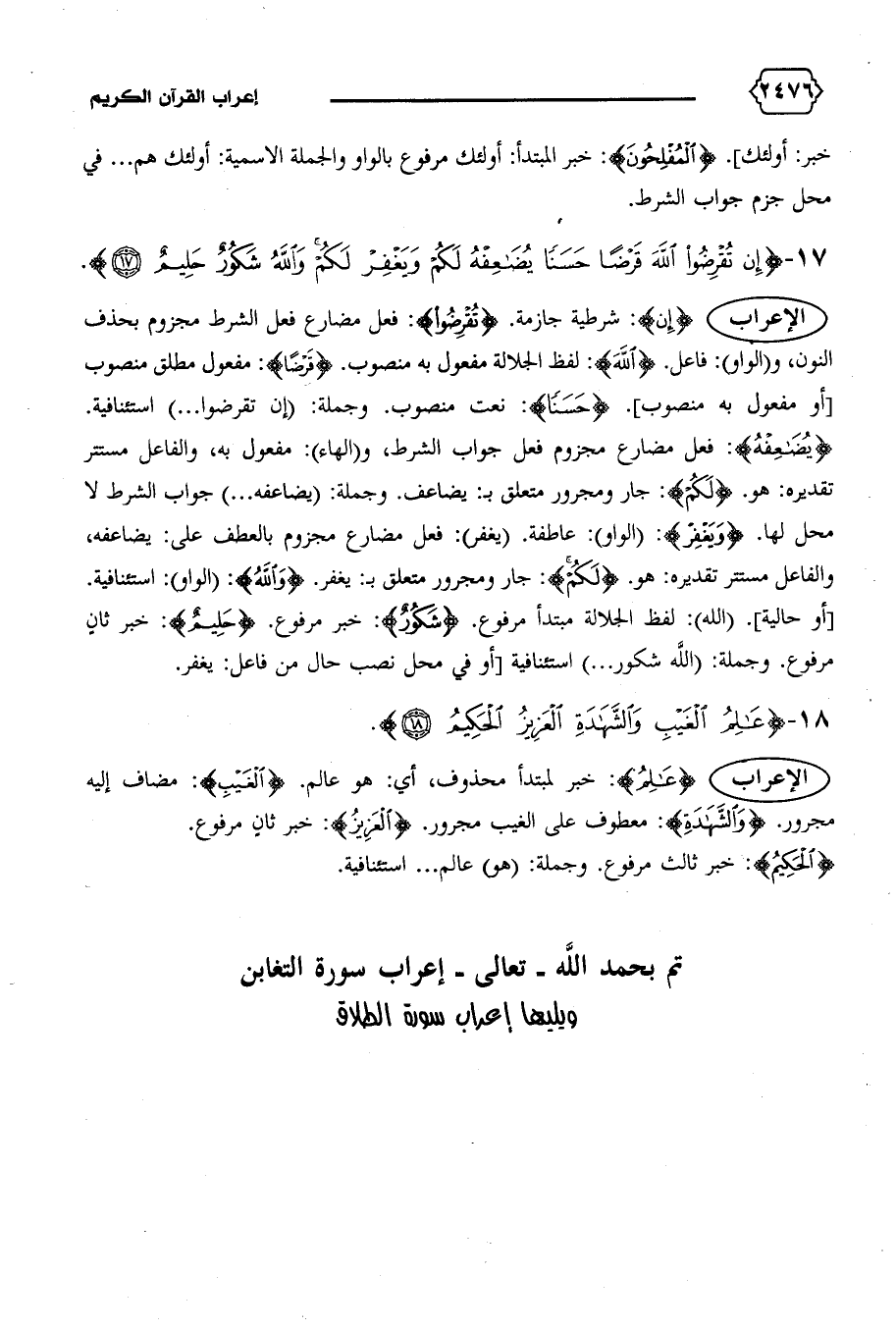 تم بحمد الله-تعالى-إعراب سورة التغابن ويليها إعراب سورة الطلاق