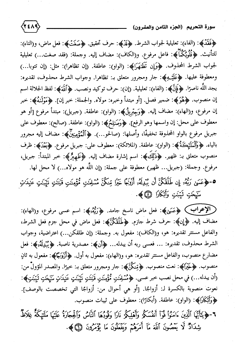 الإعراب {عَسى}: فعل ماض ناسخ جامد. {رَبُّهُ}: اسم عسى مرفوع، و (الهاء):
