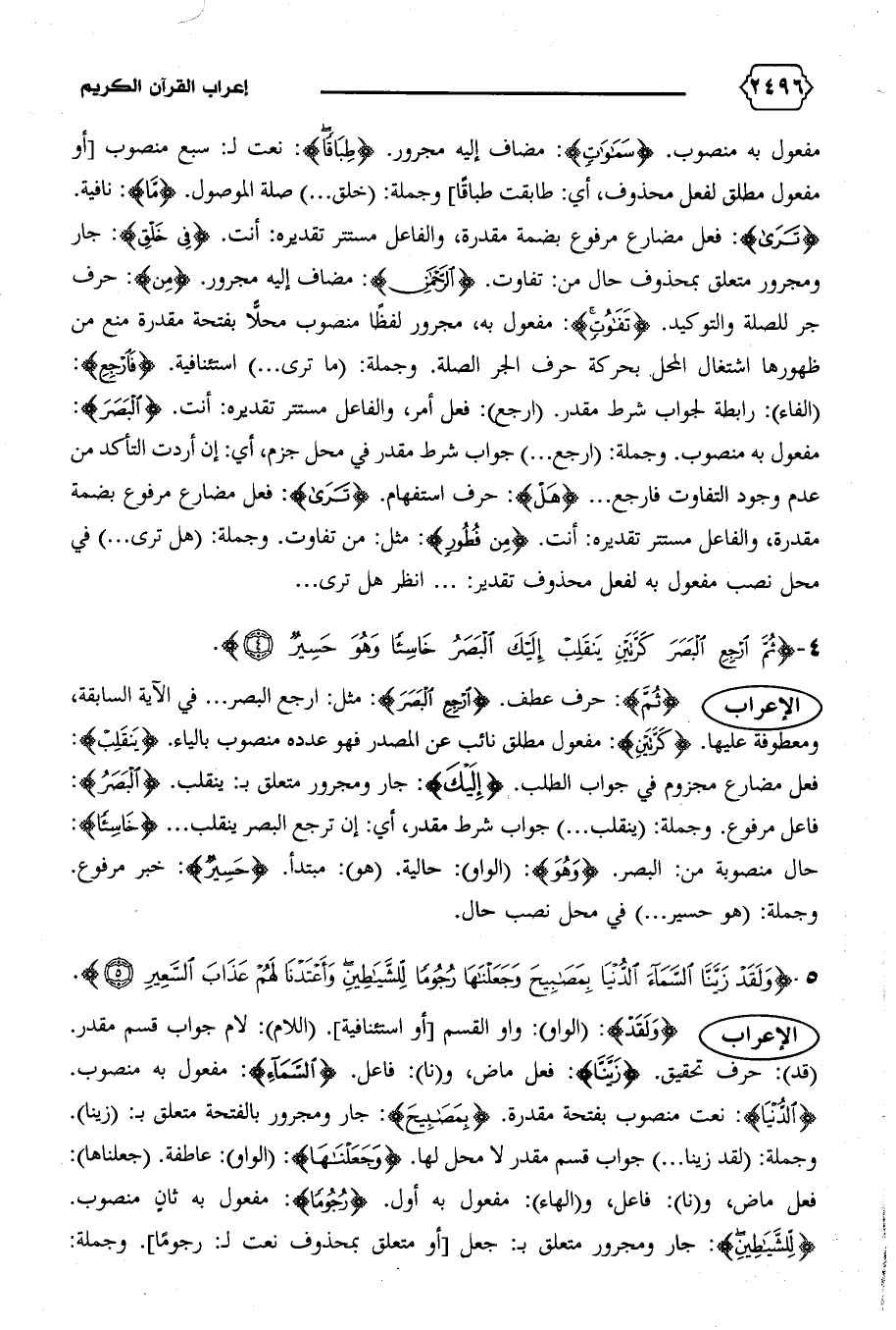 الإعراب {ثُمَّ}: حرف عطف. {اِرْجِعِ الْبَصَرَ}: مثل: ارجع البصر ... في الآية السابقة، ومعطوفة عليها. {كَرَّتَيْنِ}: مفعول مطلق نائب عن المصدر فهو عدده منصوب بالياء. {يَنْقَلِبْ}: