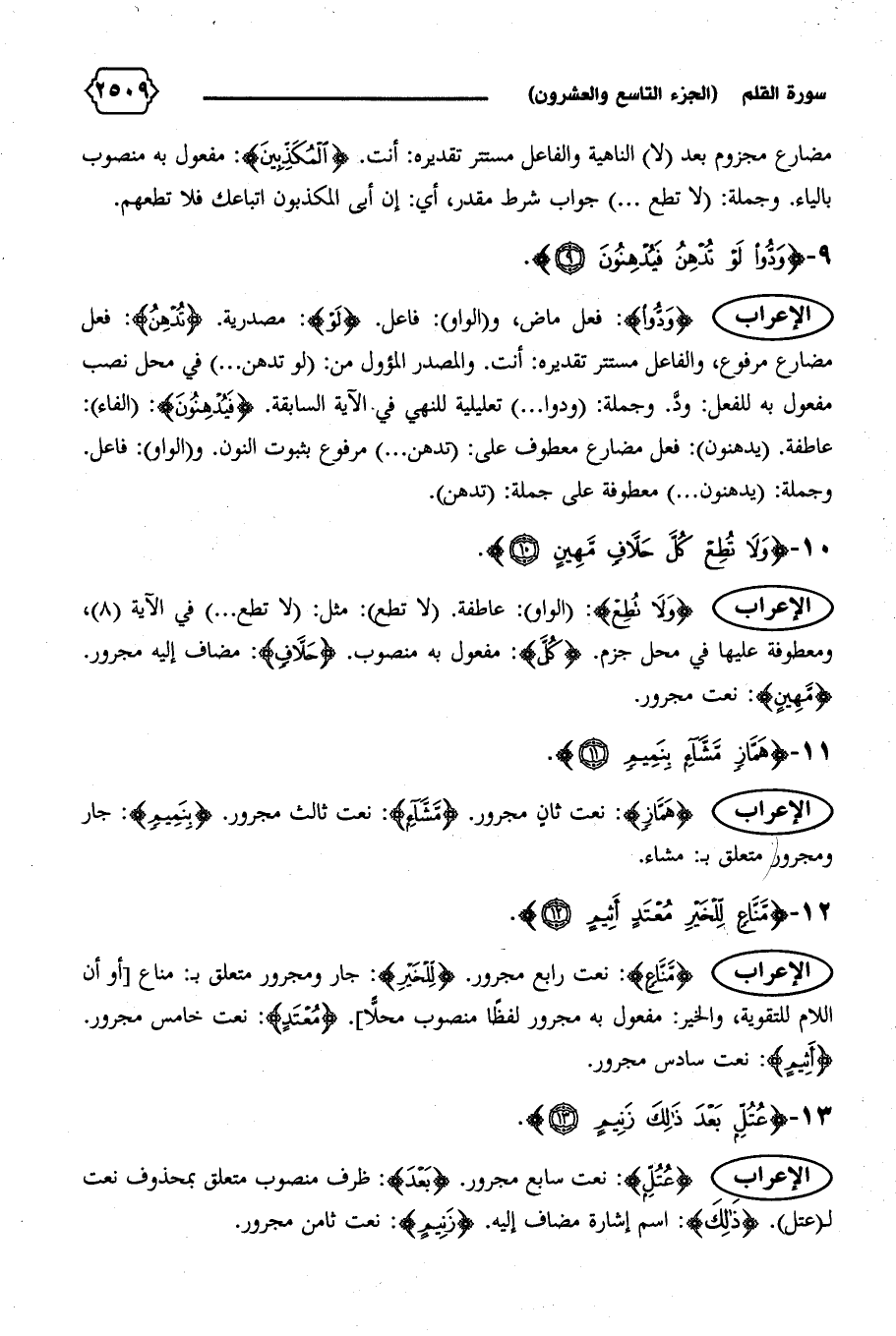 الإعراب {عُتُلٍّ}: نعت سابع مجرور. {بَعْدَ}: ظرف منصوب متعلق بمحذوف نعت ل (عتل). {ذلِكَ}: اسم إشارة مضاف إليه. {زَنِيمٍ}: نعت ثامن مجرور.