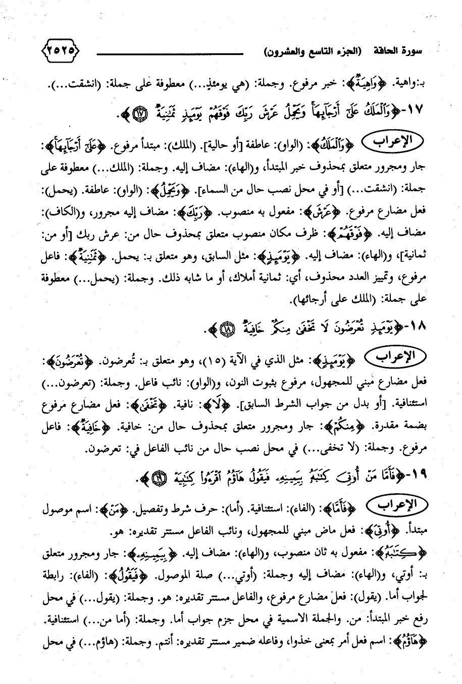 الإعراب {يَوْمَئِذٍ}: مثل الذي في الآية (١٥)، وهو متعلق ب: تعرضون. {تُعْرَضُونَ}: