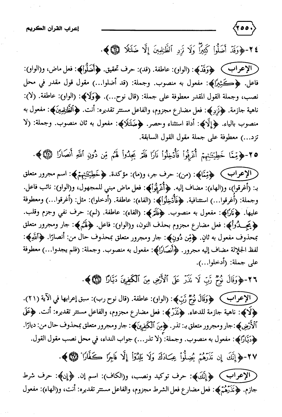 الإعراب {وَقالَ نُوحٌ رَبِّ}: (الواو): عاطفة. (قال نوح رب): سبق إعرابها في الآية (٢١).