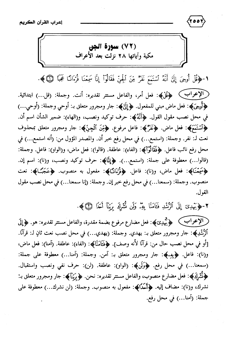 ١ - {قُلْ أُوحِيَ إِلَيَّ أَنَّهُ اِسْتَمَعَ نَفَرٌ مِنَ الْجِنِّ فَقالُوا إِنّا سَمِعْنا قُرْآناً عَجَباً (١)}