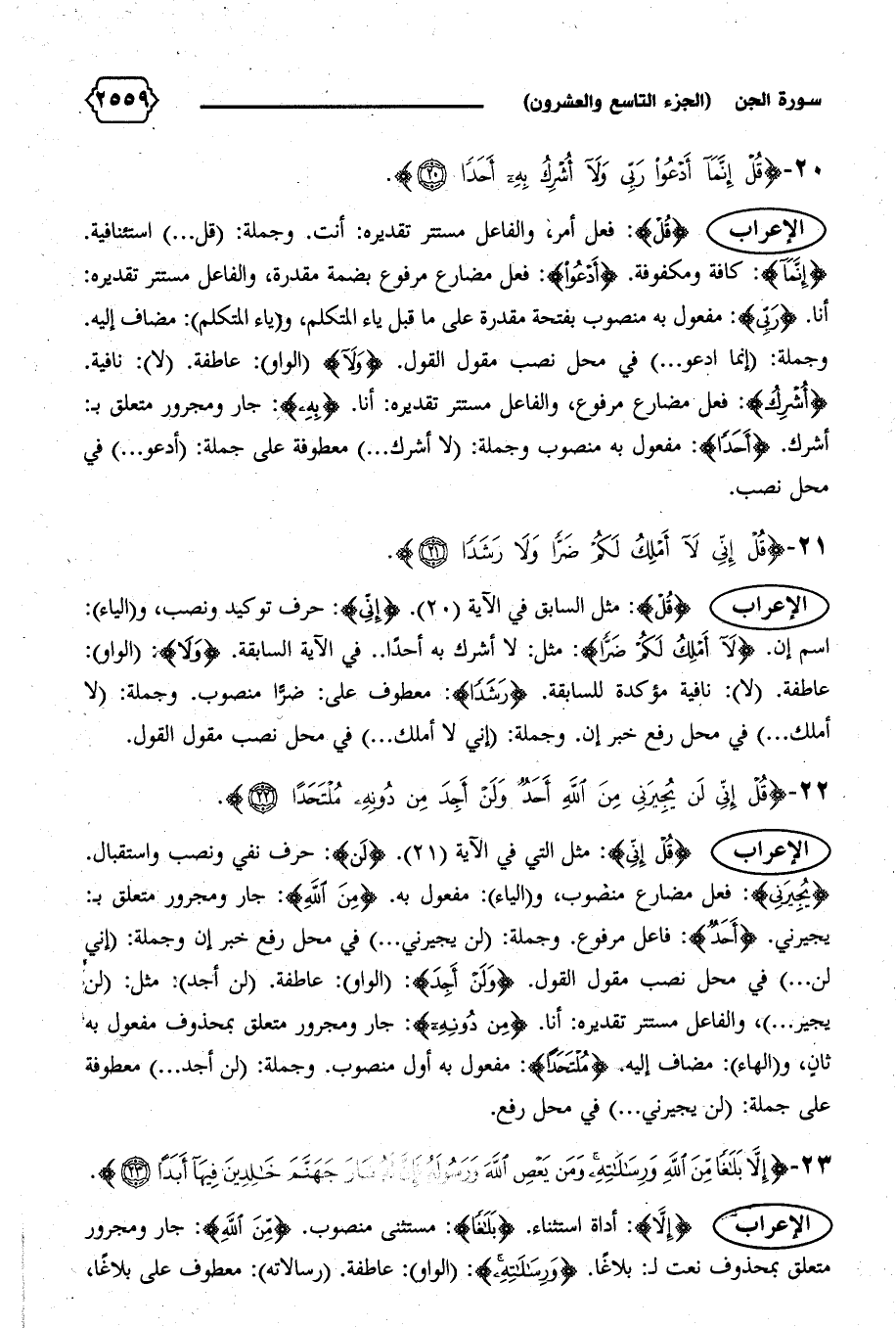 الإعراب {قُلْ إِنِّي}: مثل التي في الآية (٢١). {لَنْ}: حرف نفي ونصب واستقبال.