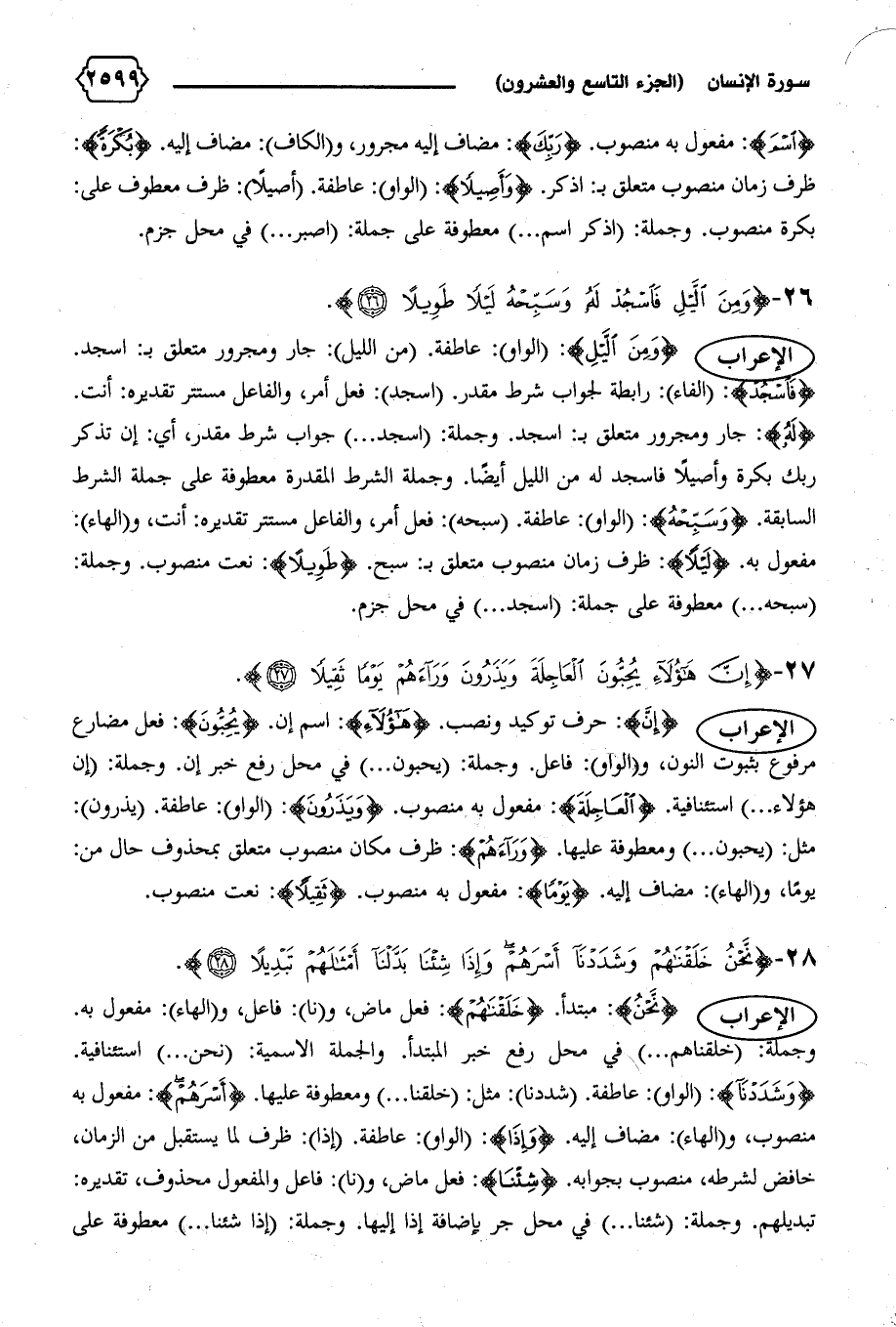 ٢٦ - {وَمِنَ اللَّيْلِ فَاسْجُدْ لَهُ وَسَبِّحْهُ لَيْلاً طَوِيلاً (٢٦)}