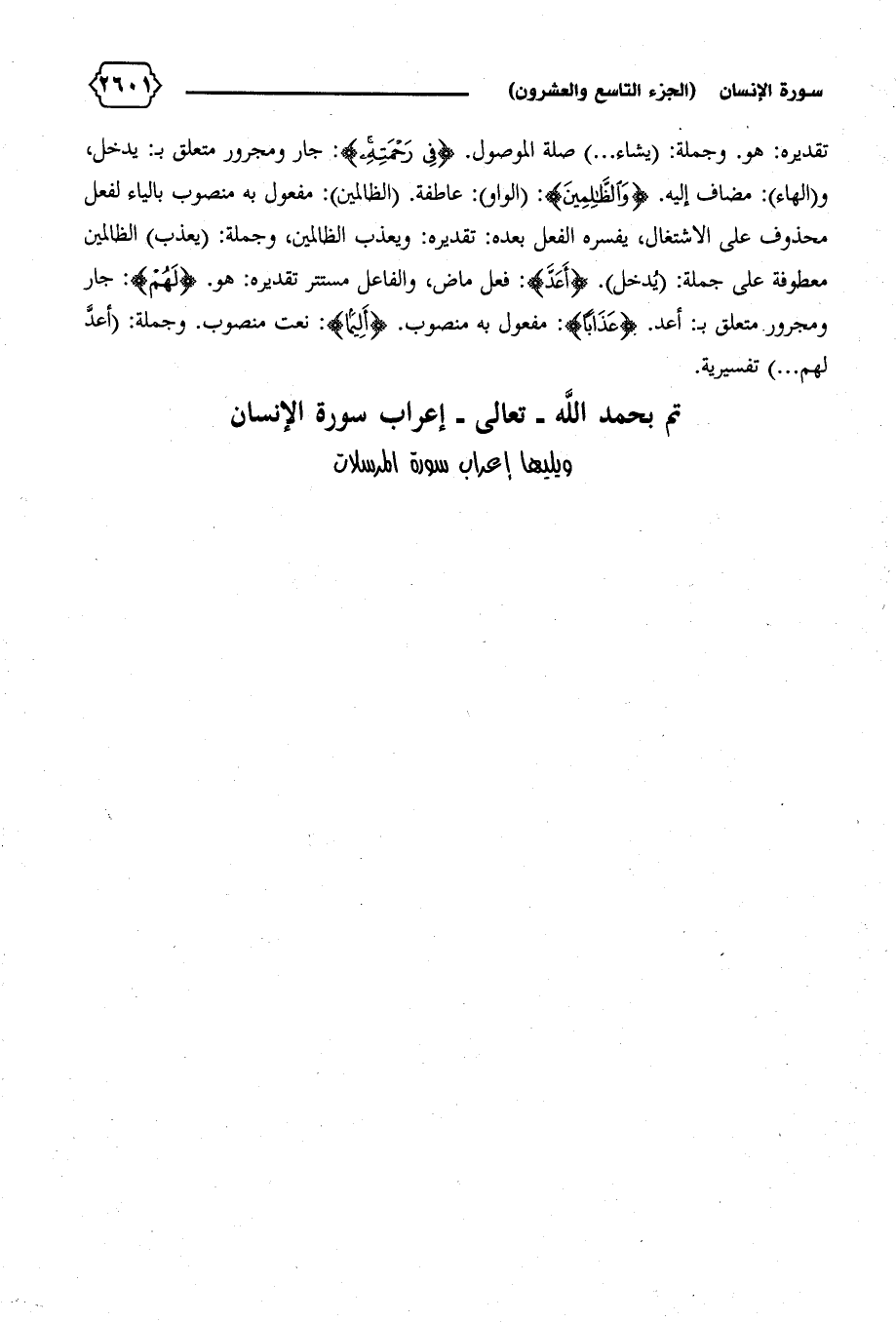 تم بحمد الله-تعالى-إعراب سورة الإنسان ويليها إعراب سورة المرسلات