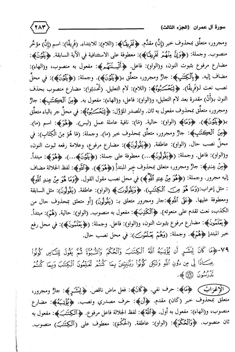 ومجرور، متعلّق بمحذوف خبر (إنّ) مقدّم. {لَفَرِيقاً}: (اللام): للابتداء. (فريقا): اسم (إنّ) مؤخّر منصوب. وجملة: {وَإِنَّ مِنْهُمْ لَفَرِيقاً}: معطوفة على الاستئنافية في الآية السابقة. {يَلْوُونَ}: