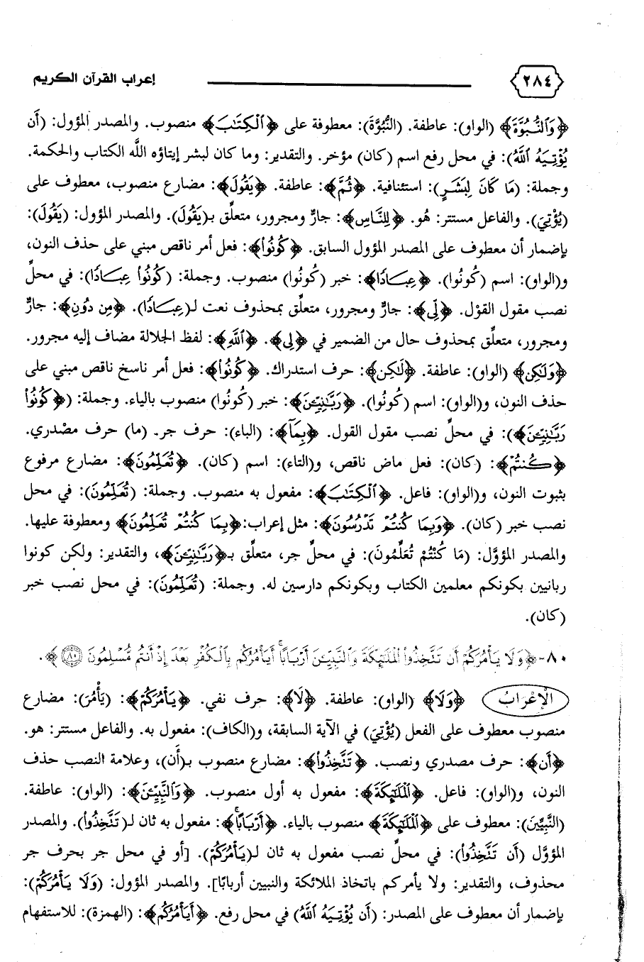 (النّبيّين): معطوف على {الْمَلائِكَةَ} منصوب بالياء. {أَرْباباً}: مفعول به ثان ل (تتّخذوا).والمصدر المؤوّل (أن تتّخذوا): في محلّ نصب مفعول به ثان ل (يأمركم). [أو في محل جر بحرف جر محذوف، والتقدير: ولا يأمركم باتخاذ الملائكة والنبيين أربابا].والمصدر المؤول: (ولا يأمركم):