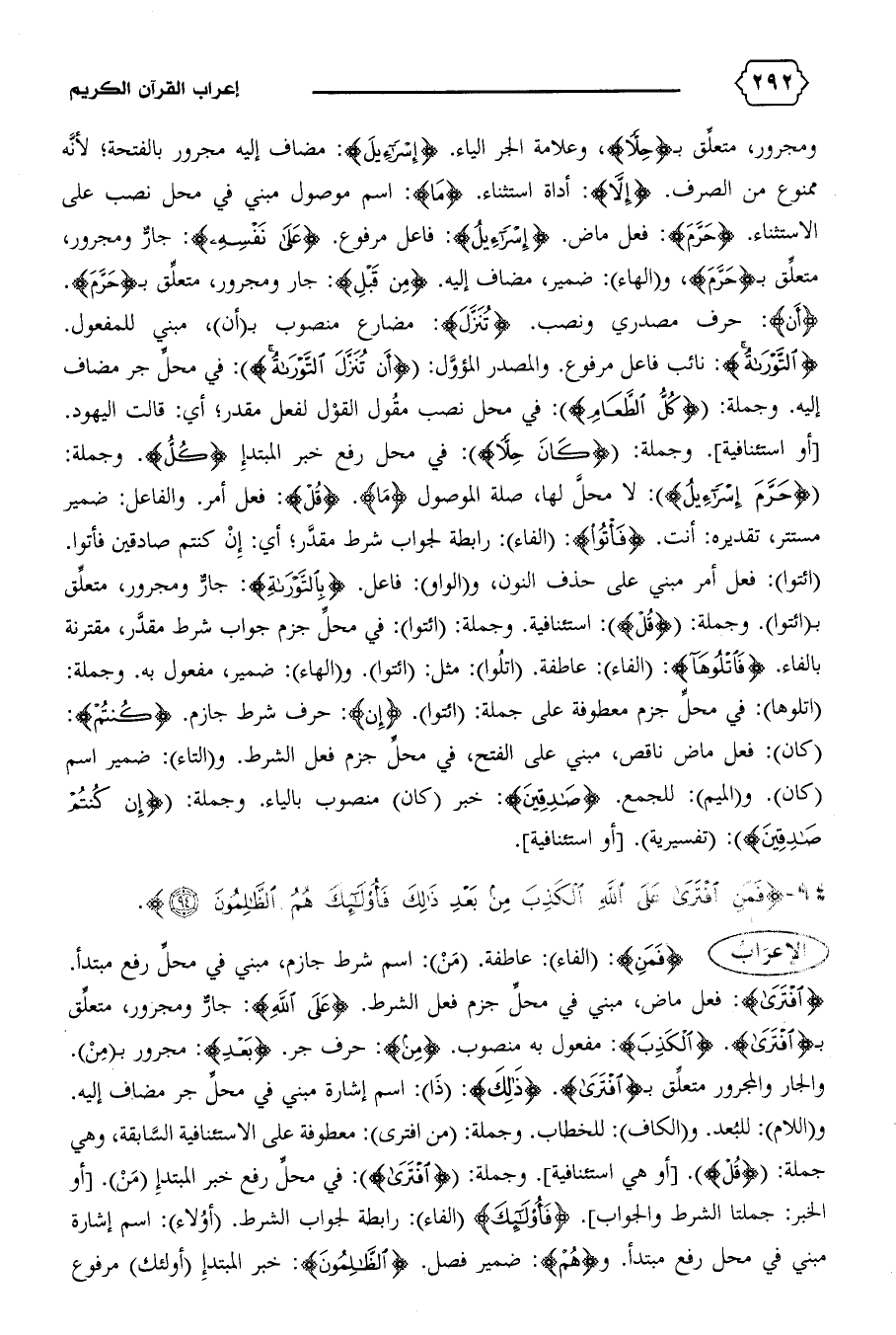 {حَرَّمَ إِسْرائِيلُ}: لا محلّ لها، صلة الموصول {ما}. {قُلْ}: فعل أمر. والفاعل: ضمير مستتر، تقديره: أنت. {فَأْتُوا}: (الفاء): رابطة لجواب شرط مقدّر؛ أي: إن كنتم صادقين فأتوا.