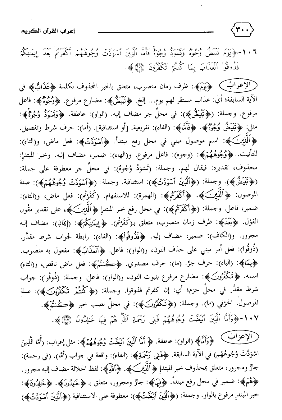 {تَبْيَضُّ}. وجملة: {الَّذِينَ اسْوَدَّتْ}: استئنافية. وجملة: {اسْوَدَّتْ وُجُوهُهُمْ}: صلة الموصول: {الَّذِينَ}. {أَكَفَرْتُمْ}: (الهمزة): للاستفهام. (كفرتم): فعل ماض، و (التاء):