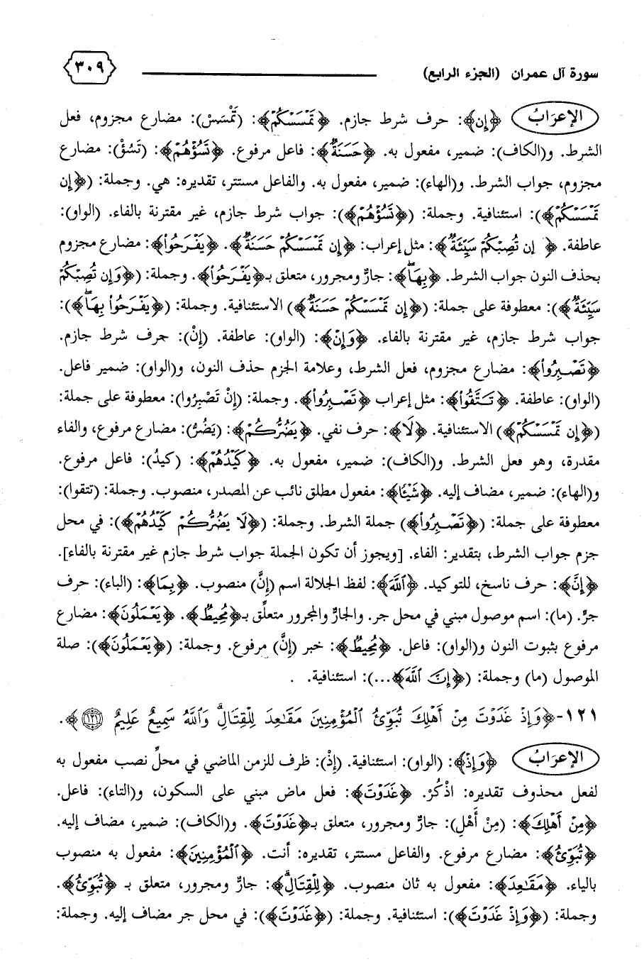 {إِنْ}: حرف شرط جازم. {تَمْسَسْكُمْ}: (تمسس): مضارع مجزوم، فعل الشرط. و (الكاف): ضمير، مفعول به. {حَسَنَةٌ}: فاعل مرفوع. {تَسُؤْهُمْ}: (تسؤ): مضارع مجزوم، جواب الشرط. و (الهاء): ضمير، مفعول به. والفاعل مستتر، تقديره: هي. وجملة: {إِنْ تَمْسَسْكُمْ}: استئنافية. وجملة: {تَسُؤْهُمْ}: جواب شرط جازم، غير مقترنة بالفاء. (الواو):