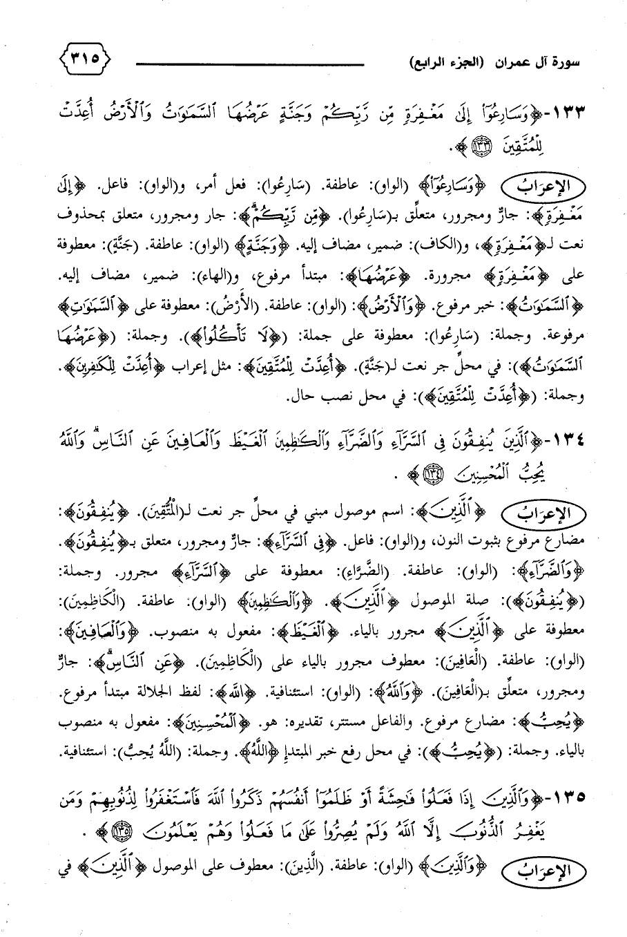(الواو): عاطفة. (العافين): معطوف مجرور بالياء على (الكاظمين). {عَنِ النّاسِ}: جارّ ومجرور، متعلّق ب (العافين). {وَاللهُ}: (الواو): استئنافية. {اللهُ}: لفظ الجلالة مبتدأ مرفوع.