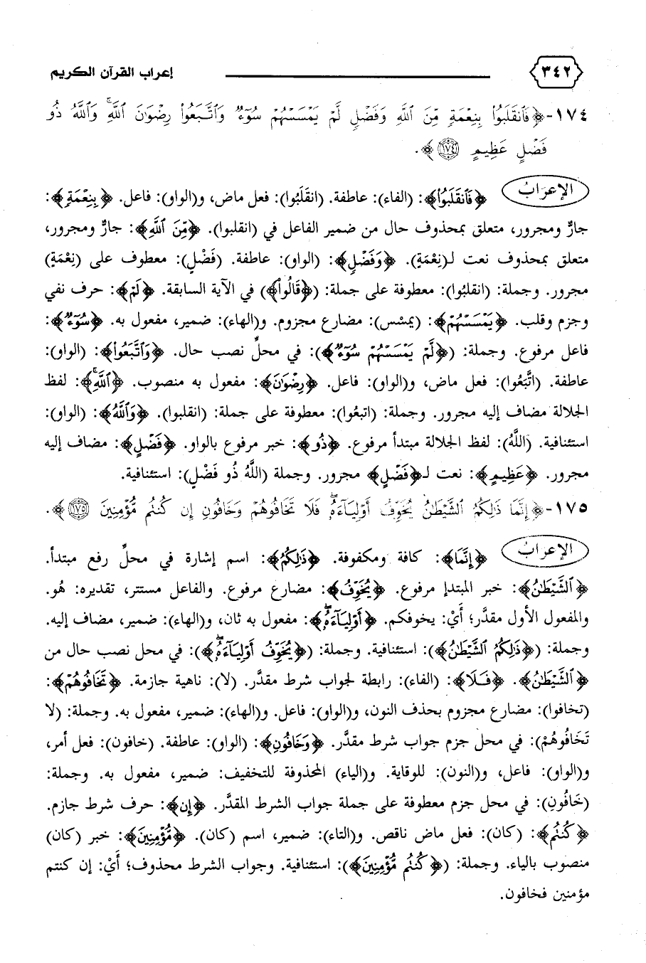 جارّ ومجرور، متعلق بمحذوف حال من ضمير الفاعل في (انقلبوا). {مِنَ اللهِ}: جارّ ومجرور، متعلق بمحذوف نعت ل (نعمة). {وَفَضْلٍ}: (الواو): عاطفة. (فضل): معطوف على (نعمة) مجرور. وجملة: (انقلبوا): معطوفة على جملة: {قالُوا} في الآية السابقة. {لَمْ}: حرف نفي وجزم وقلب. {يَمْسَسْهُمْ}: (يمسس): مضارع مجزوم. و (الهاء): ضمير، مفعول به. {سُوءٌ}: