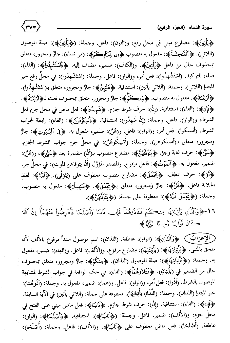 {وَالَّذانِ}: (الواو): عاطفة. (اللذان): اسم موصول مبتدأ مرفوع بالألف لأنه ملحق بالمثنى. {يَأْتِيانِها}: (يأتينها): مضارع مرفوع، و (الألف): فاعل. و (الهاء): ضمير، مفعول به. وجملة: {يَأْتِيانِها}: صلة الموصول (اللذان). {مِنْكُمْ}: جارّ ومجرور، متعلق بمحذوف حال من الضمير في (يأتيان). {فَآذُوهُما}: (الفاء): في حكم الواقعة في جواب الشرط لمشابهة الموصول بالشرط. (آذوا): فعل أمر، و (الواو): فاعل. و (هما): ضمير، مفعول به. وجملة: (آذوهما):
