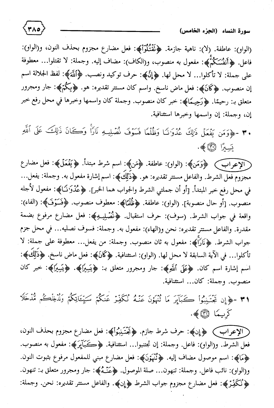 ٣٠ - {وَمَنْ يَفْعَلْ ذلِكَ عُدْواناً وَظُلْماً فَسَوْفَ نُصْلِيهِ ناراً وَكانَ ذلِكَ عَلَى اللهِ يَسِيراً (٣٠)}