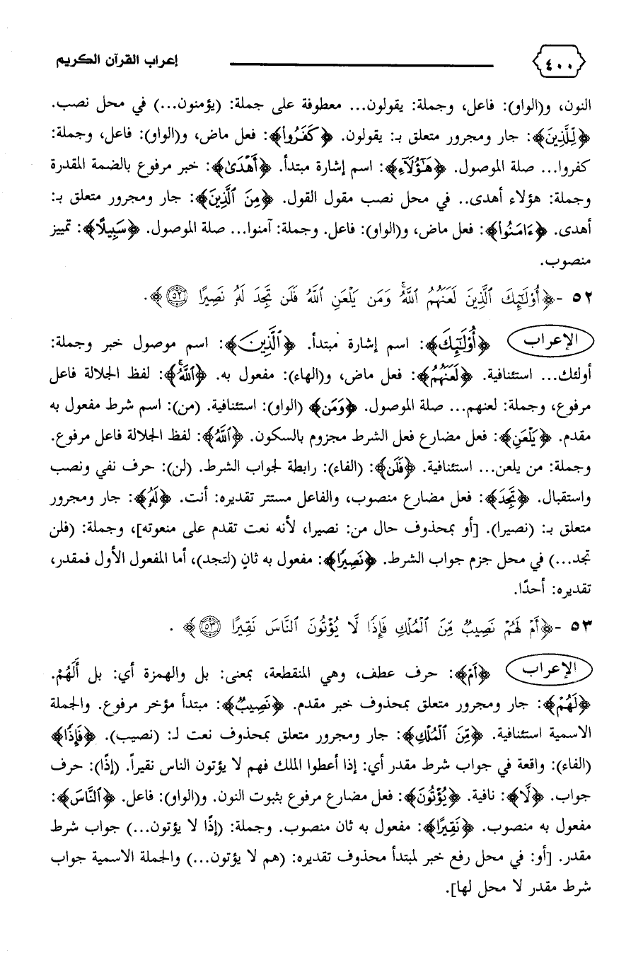 ٥٢ - {أُولئِكَ الَّذِينَ لَعَنَهُمُ اللهُ وَمَنْ يَلْعَنِ اللهُ فَلَنْ تَجِدَ لَهُ نَصِيراً (٥٢)}