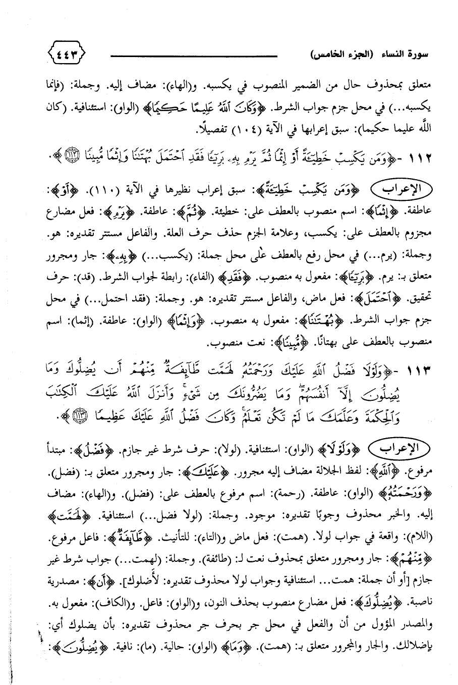 ١١٣ - {وَلَوْلا فَضْلُ اللهِ عَلَيْكَ وَرَحْمَتُهُ لَهَمَّتْ طائِفَةٌ مِنْهُمْ أَنْ يُضِلُّوكَ وَما يُضِلُّونَ إِلاّ أَنْفُسَهُمْ وَما يَضُرُّونَكَ مِنْ شَيْءٍ وَأَنْزَلَ اللهُ عَلَيْكَ الْكِتابَ وَالْحِكْمَةَ وَعَلَّمَكَ ما لَمْ تَكُنْ تَعْلَمُ وَكانَ فَضْلُ اللهِ عَلَيْكَ عَظِيماً (١١٣)}