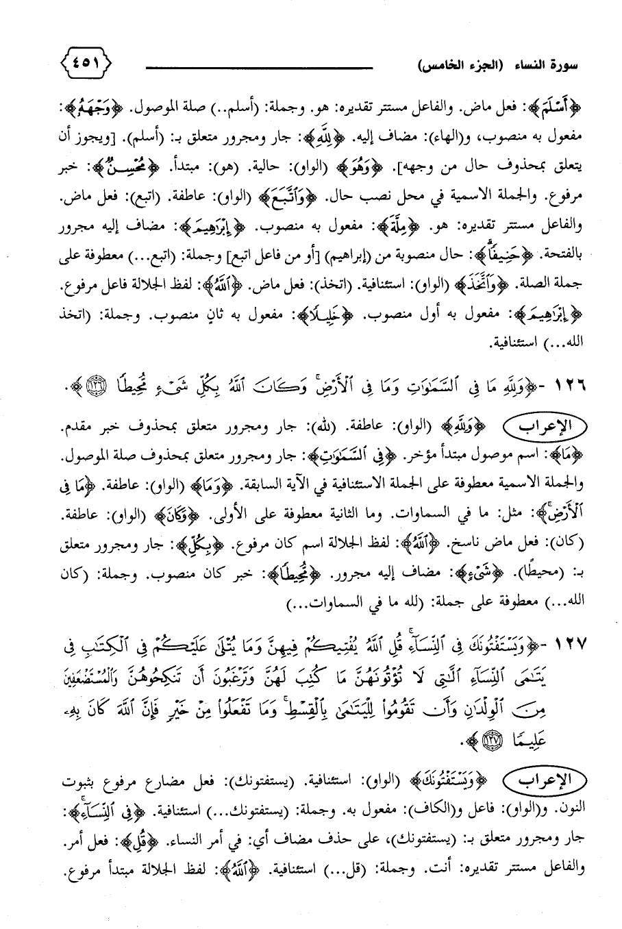 ١٢٧ - {وَيَسْتَفْتُونَكَ فِي النِّساءِ قُلِ اللهُ يُفْتِيكُمْ فِيهِنَّ وَما يُتْلى عَلَيْكُمْ فِي الْكِتابِ فِي يَتامَى النِّساءِ اللاّتِي لا تُؤْتُونَهُنَّ ما كُتِبَ لَهُنَّ وَتَرْغَبُونَ أَنْ تَنْكِحُوهُنَّ وَالْمُسْتَضْعَفِينَ مِنَ الْوِلْدانِ وَأَنْ تَقُومُوا لِلْيَتامى بِالْقِسْطِ وَما تَفْعَلُوا مِنْ خَيْرٍ فَإِنَّ اللهَ كانَ بِهِ عَلِيماً (١٢٧)}