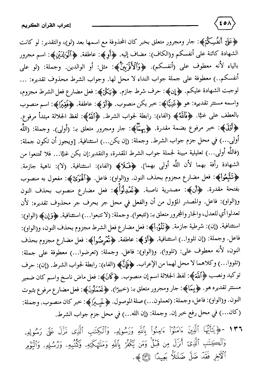 لوجبت الشهادة عليكم. {إِنْ}: حرف شرط جازم. {يَكُنْ}: فعل مضارع فعل الشرط مجزوم، واسمه مستتر تقديره: هو {غَنِيًّا}: خبر يكن منصوب. {أَوِ}: عاطفة. {فَقِيراً}: اسم منصوب بالعطف على غنيّا. {فَاللهُ} (الفاء): رابطة لجواب الشرط. {اللهَ}: لفظ الجلالة مبتدأ مرفوع.