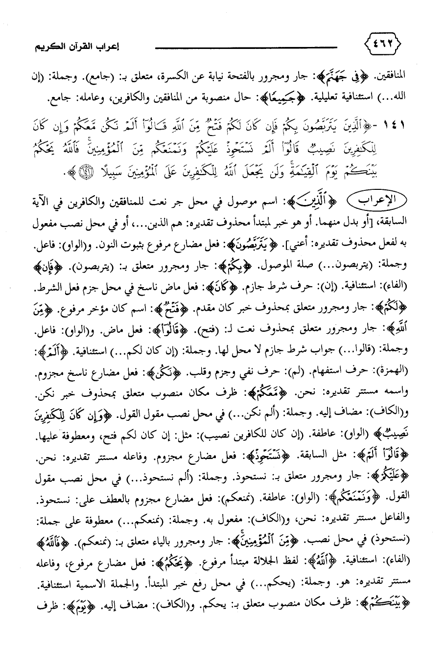 ١٤١ - {الَّذِينَ يَتَرَبَّصُونَ بِكُمْ فَإِنْ كانَ لَكُمْ فَتْحٌ مِنَ اللهِ قالُوا أَلَمْ نَكُنْ مَعَكُمْ وَإِنْ كانَ لِلْكافِرِينَ نَصِيبٌ قالُوا أَلَمْ نَسْتَحْوِذْ عَلَيْكُمْ وَنَمْنَعْكُمْ مِنَ الْمُؤْمِنِينَ فَاللهُ يَحْكُمُ بَيْنَكُمْ يَوْمَ الْقِيامَةِ وَلَنْ يَجْعَلَ اللهُ لِلْكافِرِينَ عَلَى الْمُؤْمِنِينَ سَبِيلاً (١٤١)}