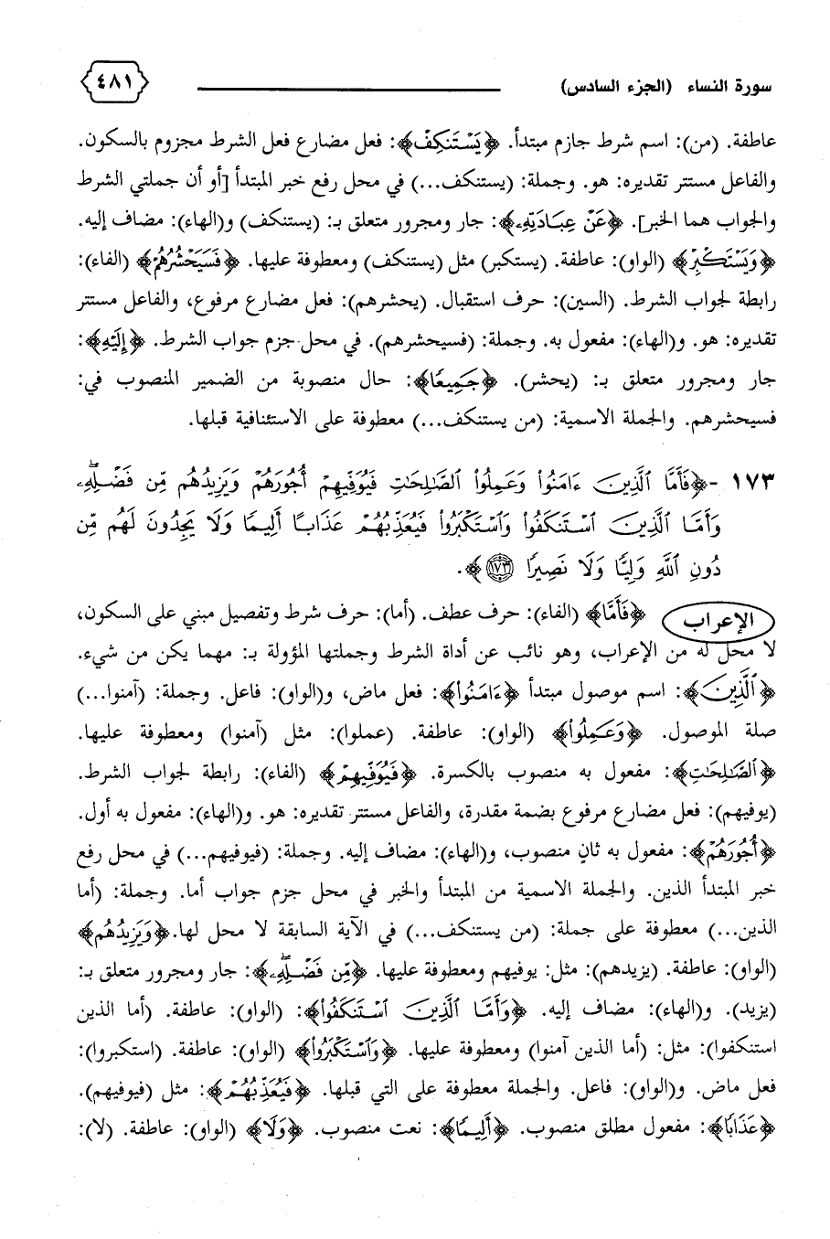 (يزيد).و (الهاء): مضاف إليه. {وَأَمَّا الَّذِينَ اسْتَنْكَفُوا}: (الواو): عاطفة. (أما الذين استنكفوا): مثل: (أما الذين آمنوا) ومعطوفة عليها. {وَاسْتَكْبَرُوا} (الواو): عاطفة. (استكبروا):