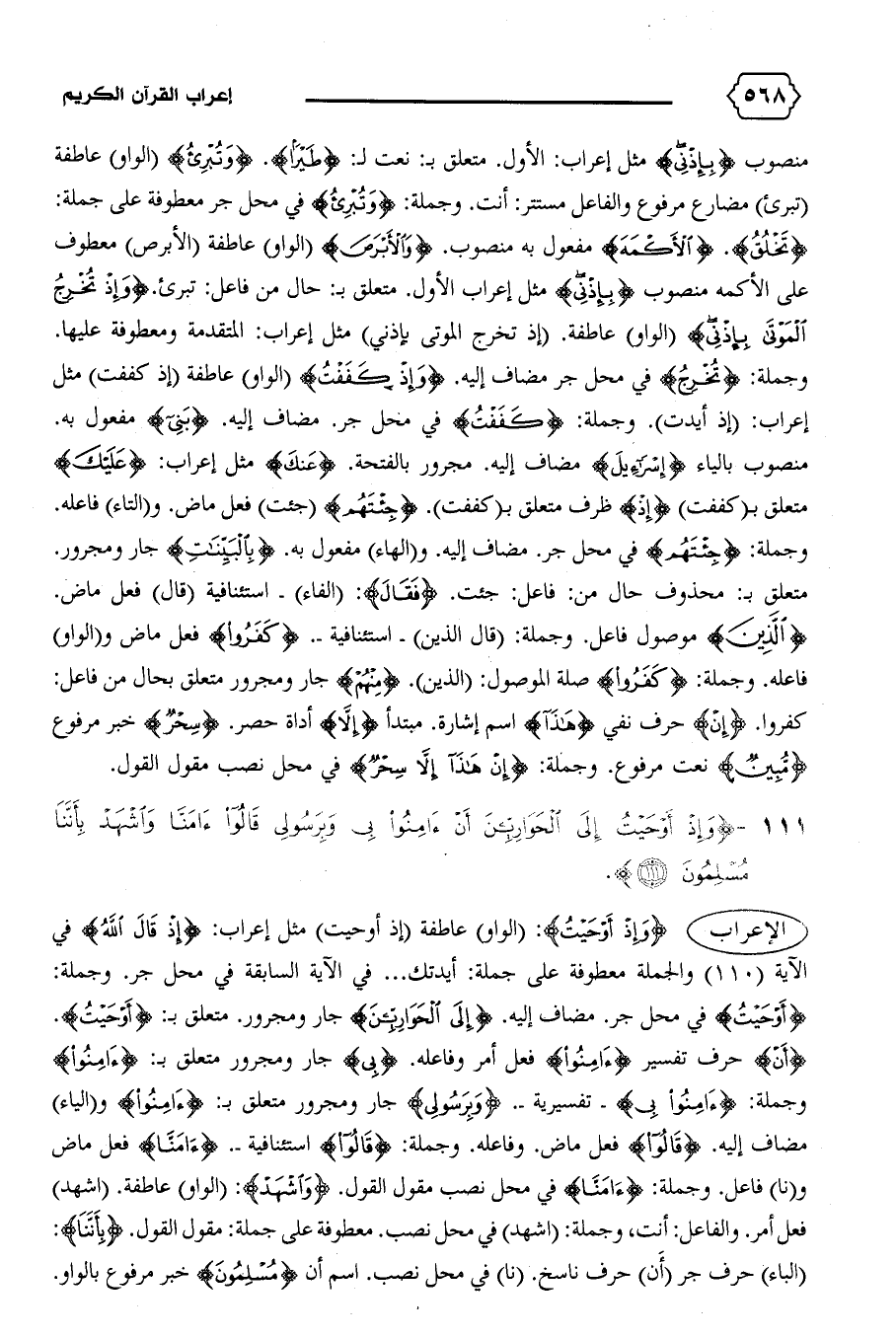 {وَإِذْ أَوْحَيْتُ}: (الواو) عاطفة (إذ أوحيت) مثل إعراب: {إِذْ قالَ اللهُ} في الآية (١١٠) والجملة معطوفة على جملة: أيدتك ... في الآية السابقة في محل جر. وجملة: