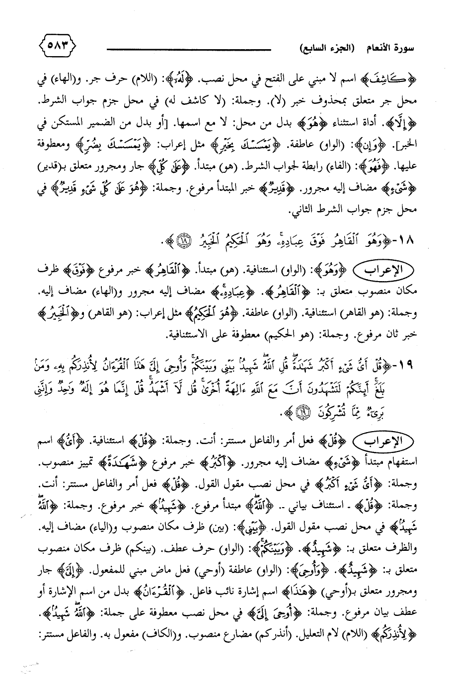 {وَهُوَ}: (الواو) استئنافية. (هو) مبتدأ. {الْقاهِرُ} خبر مرفوع {فَوْقَ} ظرف مكان منصوب متعلق ب: {الْقاهِرُ}. {عِبادِهِ} مضاف إليه مجرور و (الهاء) مضاف إليه.