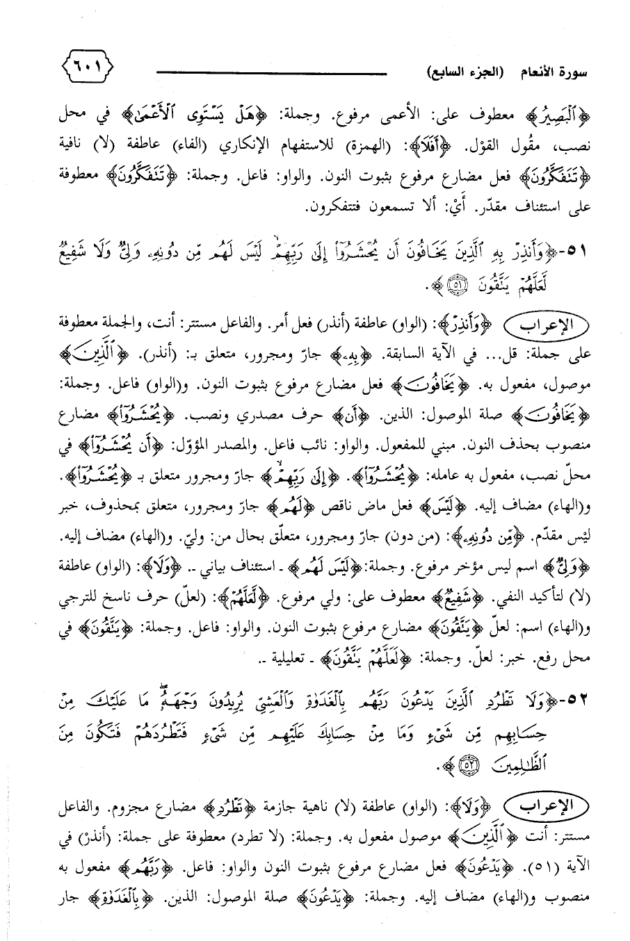 {وَأَنْذِرْ}: (الواو) عاطفة (أنذر) فعل أمر. والفاعل مستتر: أنت، والجملة معطوفة على جملة: قل ... في الآية السابقة. {بِهِ} جارّ ومجرور، متعلق ب: (أنذر). {الَّذِينَ} موصول، مفعول به. {يَخافُونَ} فعل مضارع مرفوع بثبوت النون. و (الواو) فاعل. وجملة: